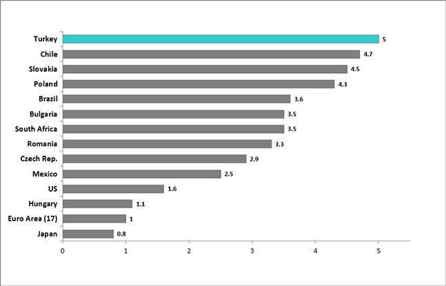 Moreover, Turkey’s impressive economic performance over the past decade has encouraged experts and international institutions to make confident projections about Turkey’s economic future. For example, according to the OECD, Turkey is expected to be the fastest growing economy of the OECD members during 2012-2017, with an annual average growth rate of 5.2 percent.